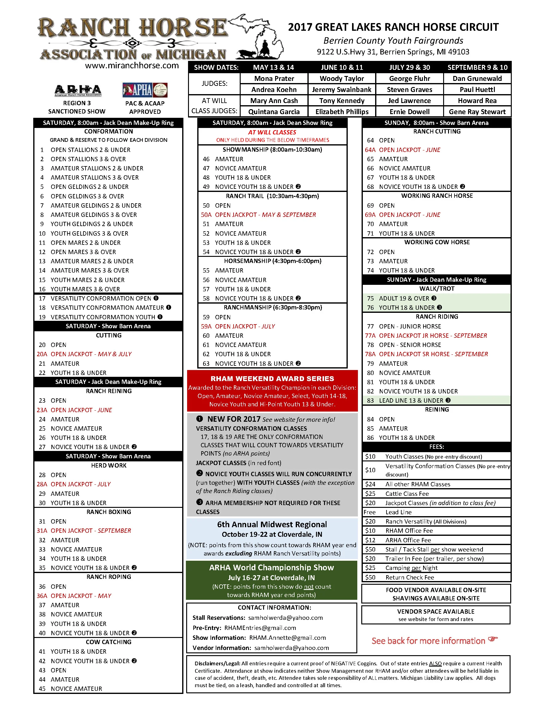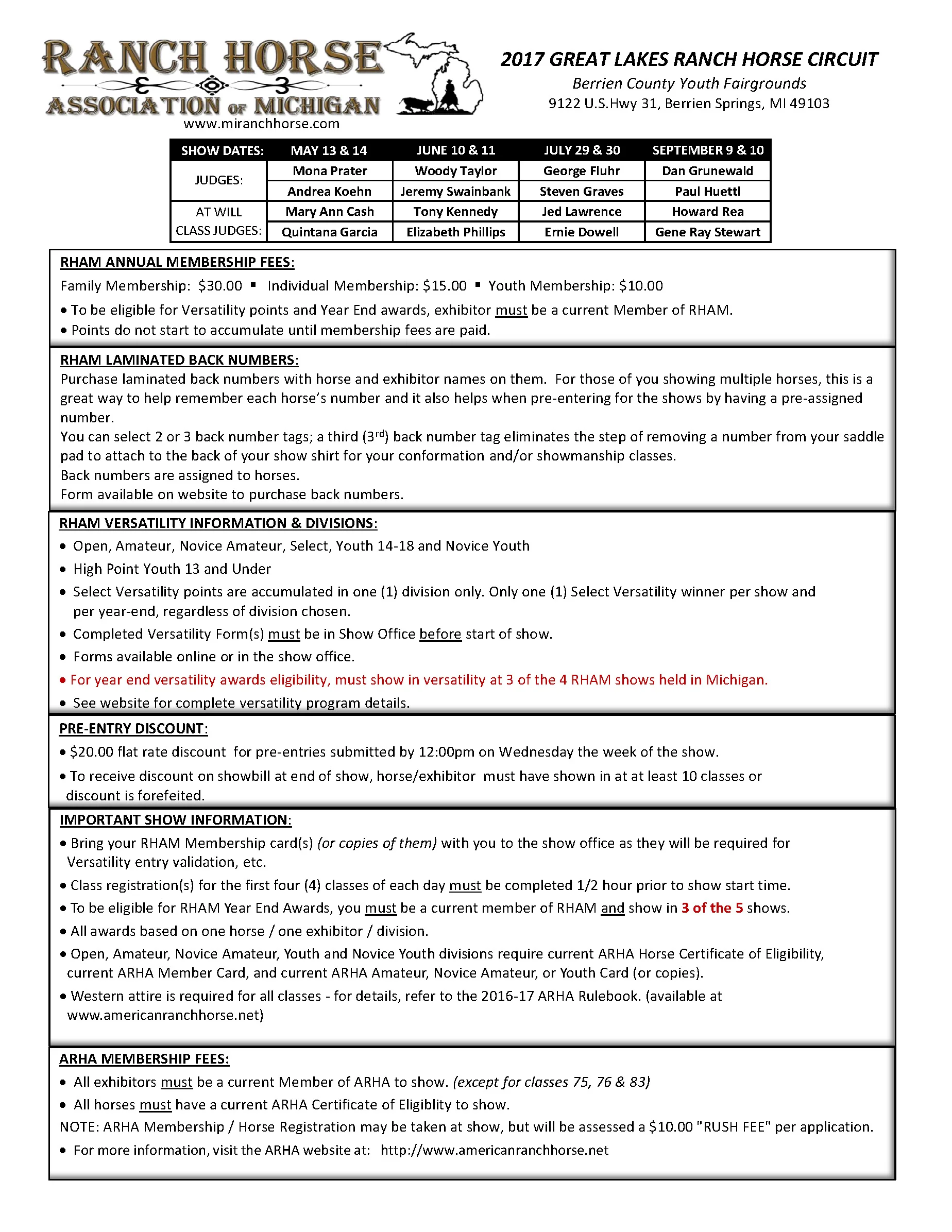 For year end versatility awards eligibility, must show in versatility at 3 of the 4 RHAM shows held in Michigan.